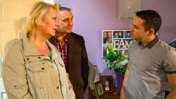 Speaking about Julie and her sister Eileen (ok, so that link didn’t work), Adrian arrives to take Eileen out on a second date. He seems a nice sort of bloke, a fork-life driver. He’s ordinary, reliable and arrives to see Eileen with a bunch of flowers in his hand. Jason’s taking the new relationship in his stride, he’s seen enough of his mam’s fellas come and go. Meanwhile, Todd continues to wind his mam up pretending he’s Jeff from Dubai, a rich, successful and fictional online match that Todd’s made up for his mam.