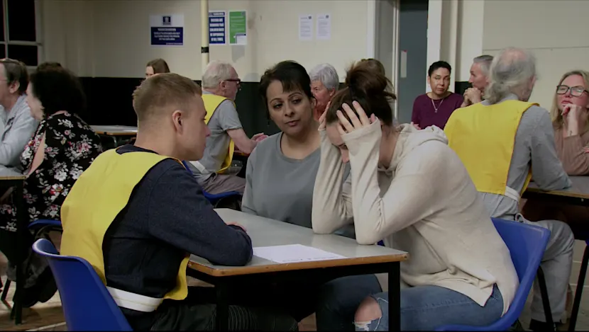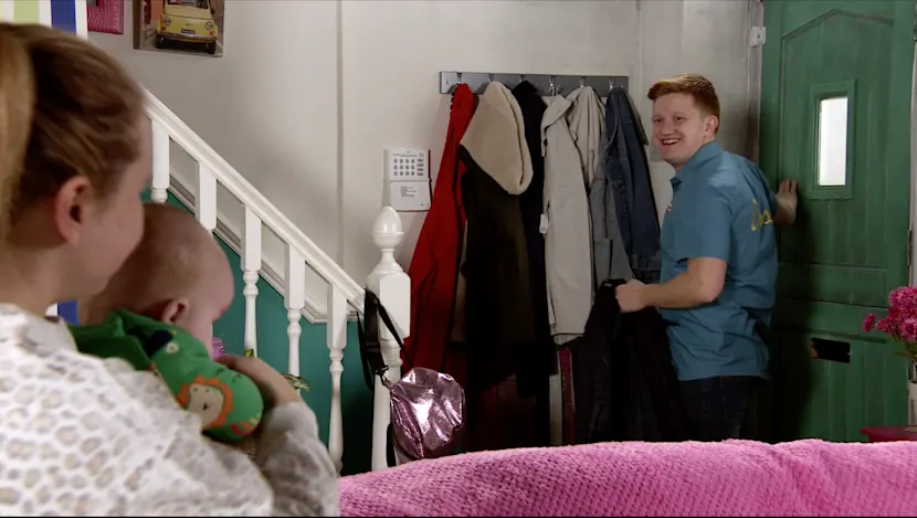 In the caff, Cathy tries to persuade Gemma to upload her vlog. She says no because she looks "a mess" and didn't like going viral with the turnstile, but I expect she'll have done it by 8 p.m. on Wednesday.