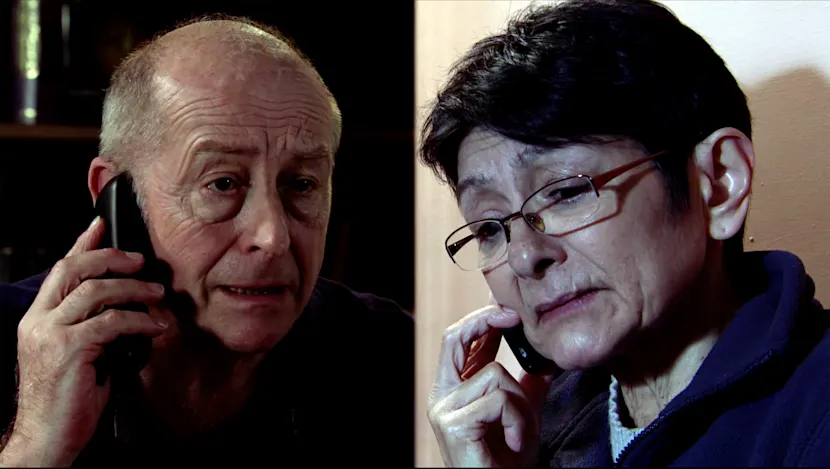 Ghastly Geoff is at it again, manipulating our lovely Yasmeen. We pick up where we left off, although this time with a split screen. He says he will drop the charges if she agrees to get back with him, although she can't tell anyone about it. Yas, you'd be better off with Big Bertha from B Block! Geoff is frustrated that she is wiseing up to his appalling behaviour ("I felt bullied and terrified in my own home") and Yasmeen slams the phone down. Waste of phone credit if you ask me. There's worse news for Geoff as Sal says she will be a character witness for the defence. Tim is, to say the least, unimpressed.