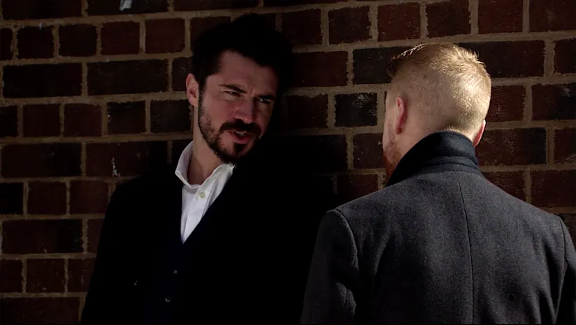 Gary finds out that Laura has been hurting Kelly (who has bruises on her wrists) and tells her, forcibly, that she better not do it again and she needs to up her game. She leaves the furniture shop upset, witnessed by Adam. He, in the meantime, has rung up Gary's storage unit and got the details of the ginger ninja's locker.