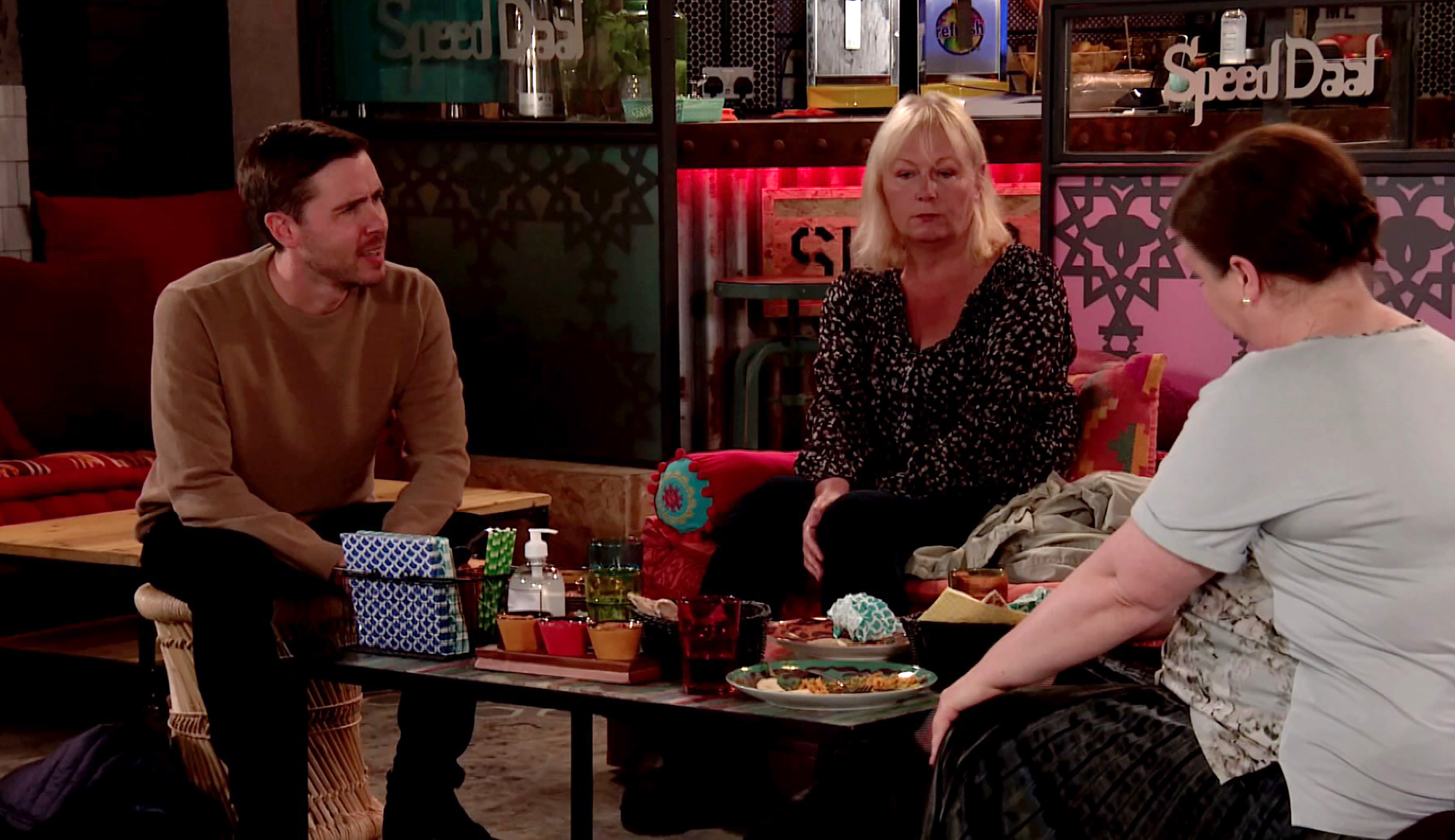 After some initial misgivings, I'm quite into Nu Todd, now that the gangster storyline is over, and he's back to doing what he does best: causing trouble unnecessarily between friends and family. The Loki of Weatherfield goes to Speed Daal with his mum, plus George and Mary, suggesting that George likes Eileen rather than Ms Taylor. George is having none of Todd's nonsense and doesn't react to Todd's filth about wanting to be buried with his bum in the air (?!) But it looks like Todd is right as George seems upset at having to leave Eileen to hang out with Mary. Middle aged love triangle!?