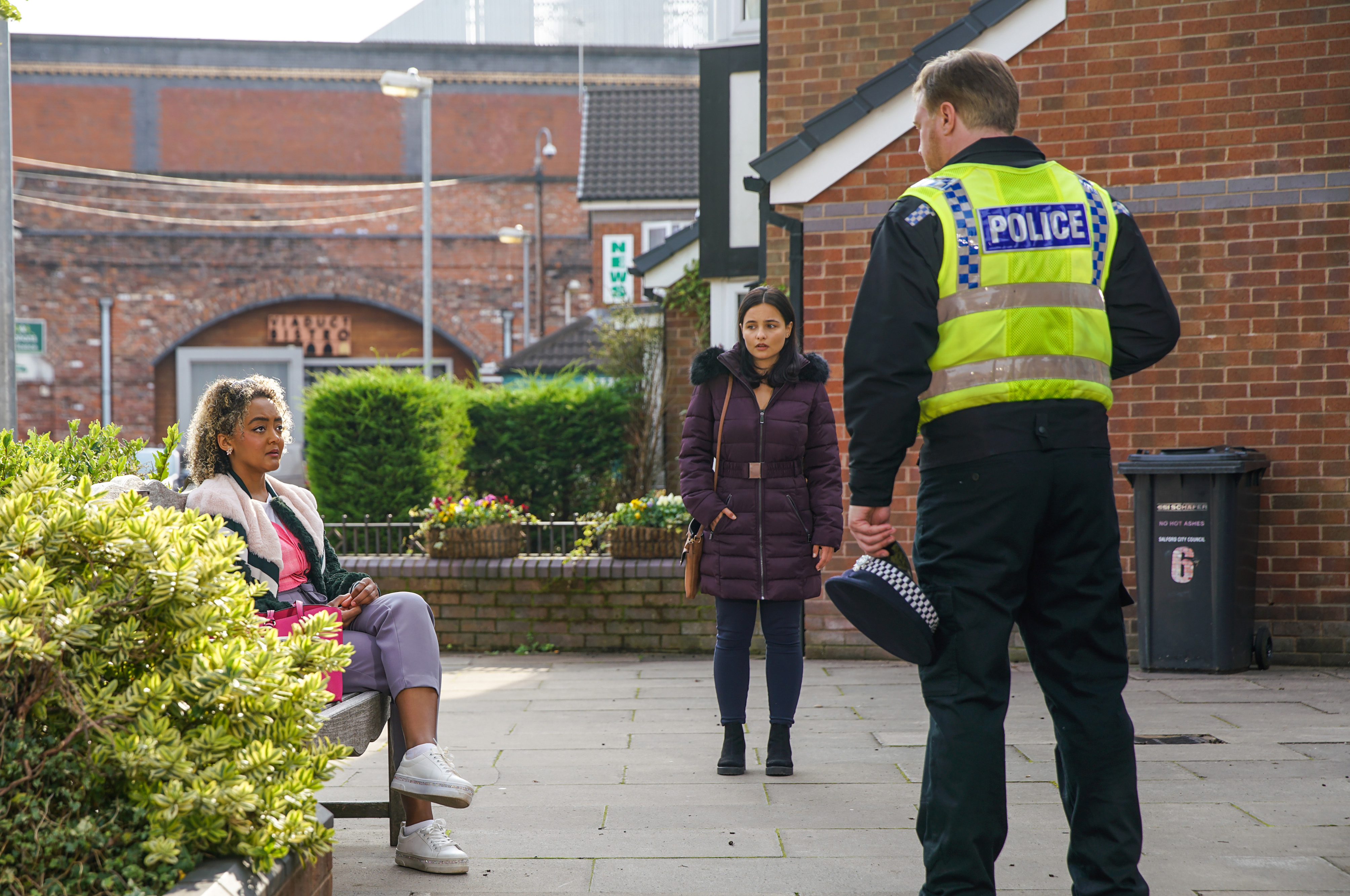 Sean is doing excellent dad work letting his son stay up til 2 a.m. and eat ice-cream for breakfast. Hasn't half term finished? Dylan's not that fussed though, he just wants to hang out with Aadi, but Aad has to work in the kebab shop and is moaning about it and new trainers, or the lack thereof. Corey, who is back at school after half term despite being 26, turns up with the aforementioned trainers as a gift for his girlfriend and so Aadi jumps to all kinds of conclusions about his sister's sex life and spills to Dev. I do find it a bit weird how everyone in Corrie is so interested in their relatives' bedroom antics. Although considering people are constantly getting pregnant, you'd think that contraception could be part of their conversations.