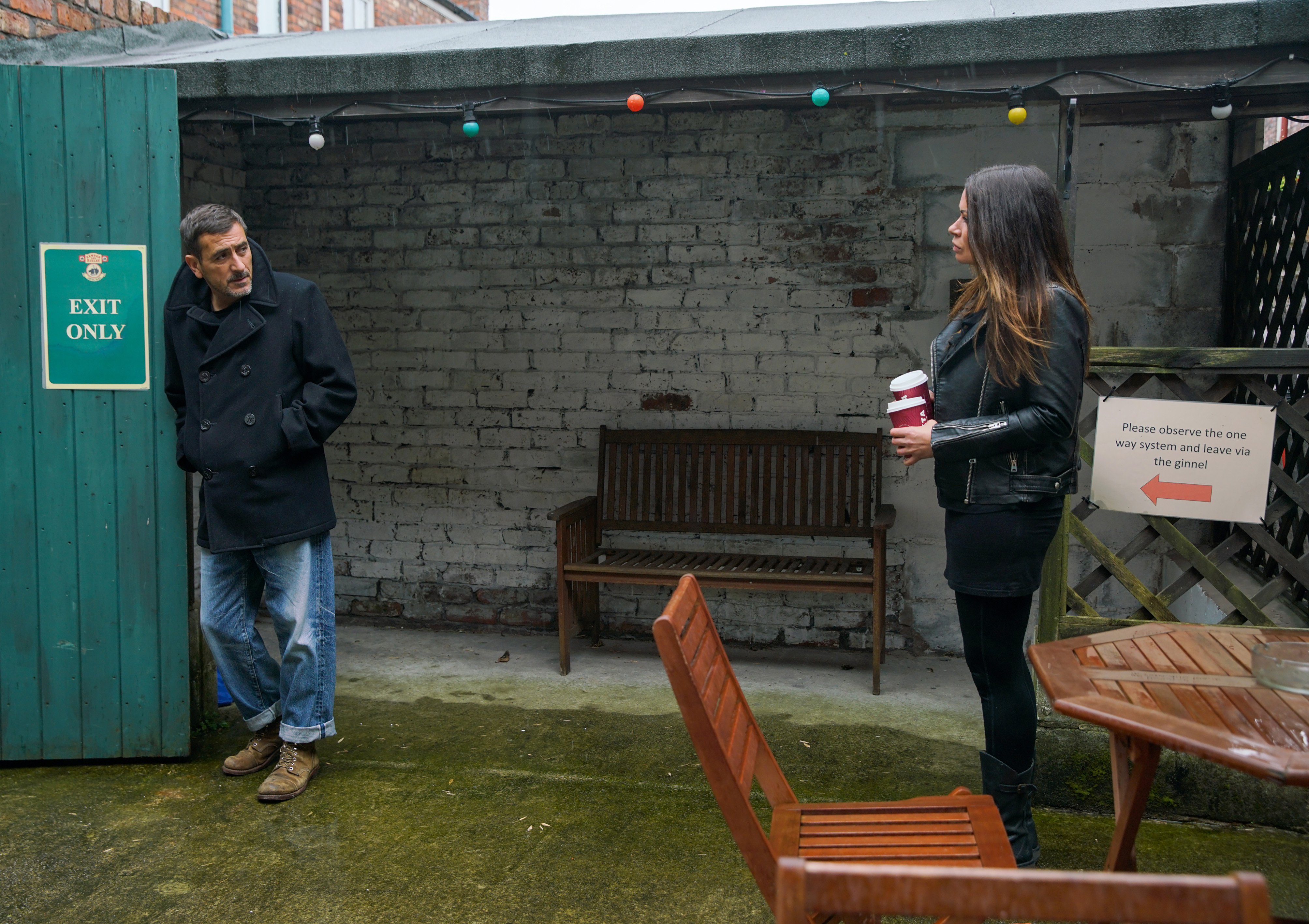 There's only room, with social distancing, for one warring couple at a time in the pub living room. Peter and Carla have made up and are going on lunch dates (although Peter's still playing detective, trying to find out who was in the hotel bar with Carla (he should get D.I. Tinker on the case)), so it's Johnny and Jenny's turn. He is still in turmoil about Grant, the security guard who drank himself to death following Scott and Johnny's car accident that left him injured. Jenny hasn't changed her position; she doesn't think Johnny should turn himself in, but she does fill Carla in on the storyline. Carla says she has done some bad things also, but she means sleeping with Adam, rather than knocking St Stella down whilst drunk or that corporate manslaughter incident that she covered up.