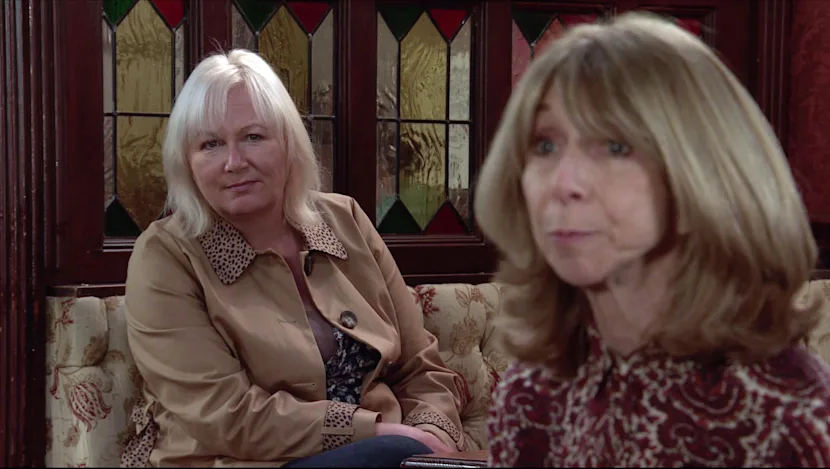 Ken intends to go on a pub crawl to distribute a pic of Peter asking them not to serve him. You're in luck Ken, all the pubs are shut. Talking of Peter, I'm reading Rupert Everett's autobiography at the moment and at one point Rupey works with Joseph McKenna, who was one of the younger Peter Barlows, one of the ones that actually had a Scottish accent. Rupes accompanied him to the set where the two were larking about and were apparently screamed at by a long-standing, flame-haired member of the cast who called them "little shits", although Pat Phoenix tried to cheer everyone up afterwards. Anyway, Adam suggests that he and Tracy-luv take it in turns to look after Peter. Adam's first mission doesn't go so well as Peter returns to number 1 having had more than a few wee drams.