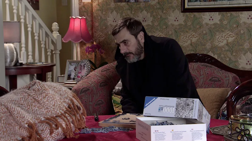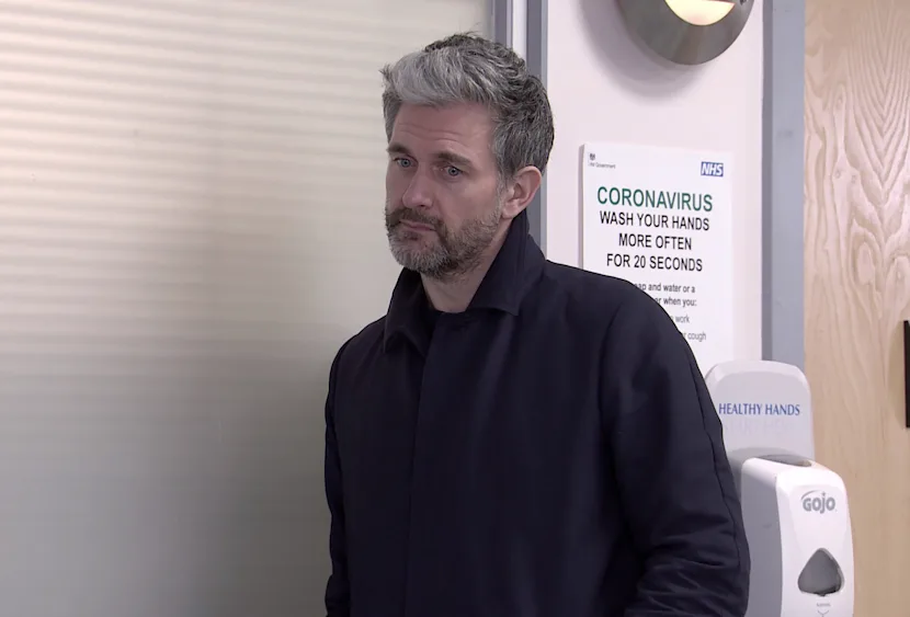 Meanwhile the impressively bouffanted Lucas arrives at the factory to talk shop but really to give all of his living-with-an-addict advice, which is really to get Carla to dump Peter and run off with him to Devon. She just doesn't know how to quit Pete, but Lucas does manage to persuade her to go into town (to walk sadly past loads of bars and restaurants that are closed), only to return to find out that Peter's in a bad way.