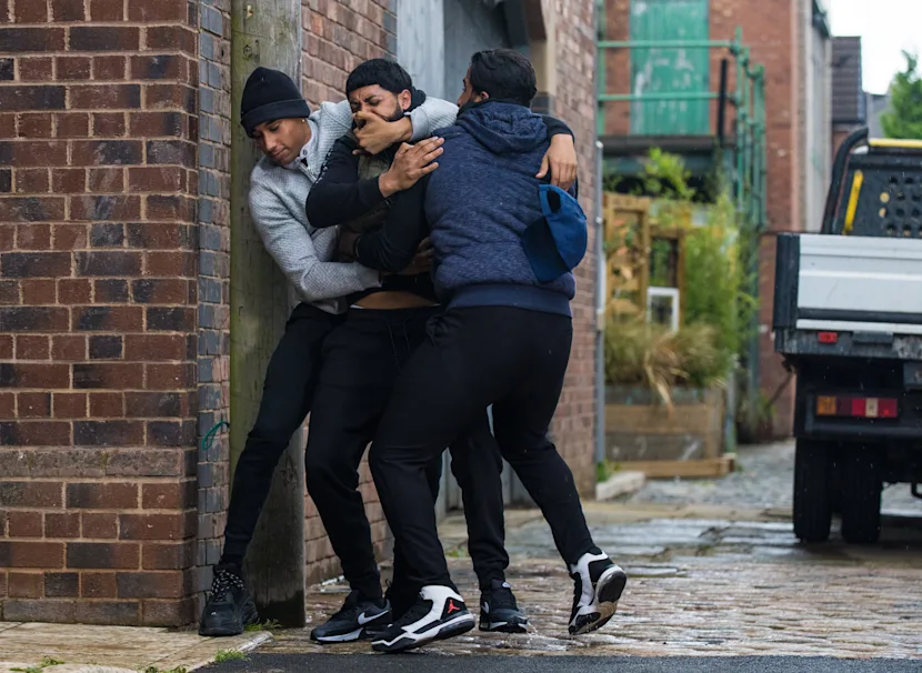 Alya is suspicious of the £50K offer from her brother (Blackadder 1). For those of us who watched Shameless, it's a bit weird to see little Chesney Karib all muscled up. Talking of which, I'd love for Yvonne (Kelli Hollis) to join t'cobbles. Anyhoo, Zee has decided to get a nemesis, in this case Ryan and he starts verbally abusing him in Roy's. Hardly a fair fight. Alya gets all upset and tells Zee to sling his hook but they later reconcile just before he's attacked by thugs and left in the ginnel of doom. Does everyone return to the street with baddies after them? I'm surprised that a representative of the Cosa Nostra didn't follow Ken up from Southampton. Zeedan says it might have been Ryan and PC Plonker Tinker goes off to interview him, but Ry says he was working in the pub when it happened. Zeedan finally reveals to his sister and gran that his ex-wife's father and brothers are after him.