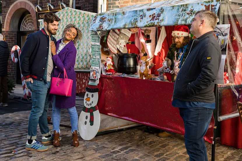How much do I love Mimi? Let me count the ways. One, her overbearing ways explains Phil(l)'s general sappiness; two, her magnificent snobbery and fabulous dress sense; three, she gets on with Sally like a Speed Daal on fire, and four, she's a good (temporary) replacement for Dame Maureen of Lipman, who seems to be on holiday. Mimi goes shopping for some party dresses for the girls (fabulous in taffeta) and for Fiz, an off the shoulder number in sparkly teal. It's very nice and Fiz is supremely ungrateful. Mimi, you can be my mother in law anytime. Fiz complains to Tyrone about Mimi and Phil(l) and Tyrone surprisingly bigs up Phil(l) and tells the Fizzster that Phil(l) intends to take her and the girls away for Christmas. We'll see, shall we?
