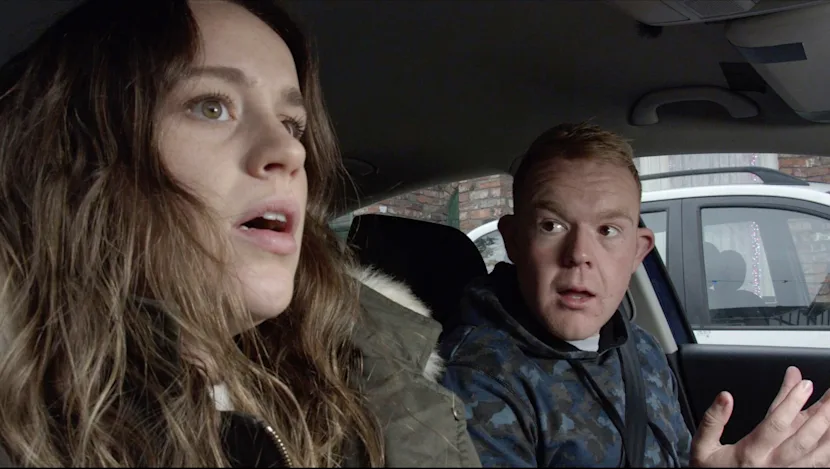 Emma is pretty in pink (what else?) although Curtis, when he (finally) rocks up looks more like he's marrying Paul. Tracy walks her daughter in law down the aisle, to be interrupted by PC Plonker Tinker and Steve demanding that he be arrested, although Curtis says that it's all an error. He is released under investigation and claims that the flights were for a surprise honeymoon. Steve finds out that a technical error delayed the £100K transfer, but he doesn't tell Emma this, who says she's kicked Curtis into touch. Curtis only has himself to blame really, he has not so much cried wolf as wept a whole lupine pack.