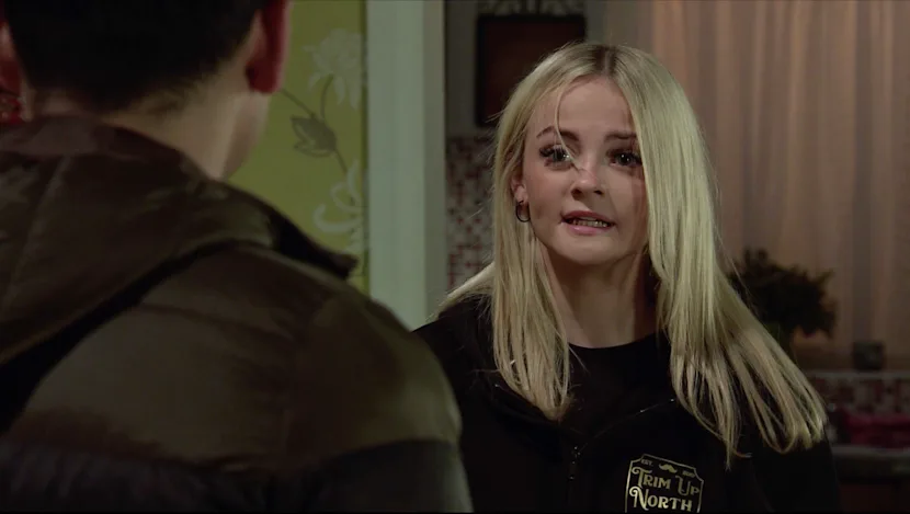 Sarah tries to push the Barlow-Platt joint Christmas whilst David takes a reluctant Max to see Mrs Crawshaw, who says, after Daniel's intervention, that they're not going to expel him. Sarah inveigles Lydia into helping her with a school baking thing (doesn't Lydia have to executively assist her boss, rather than Sarah, during the daylight hours?) but Lydia leaves sharpish as soon as Adam steps into the house, so I'm guessing Xmas Day for the paternity reveal, non?