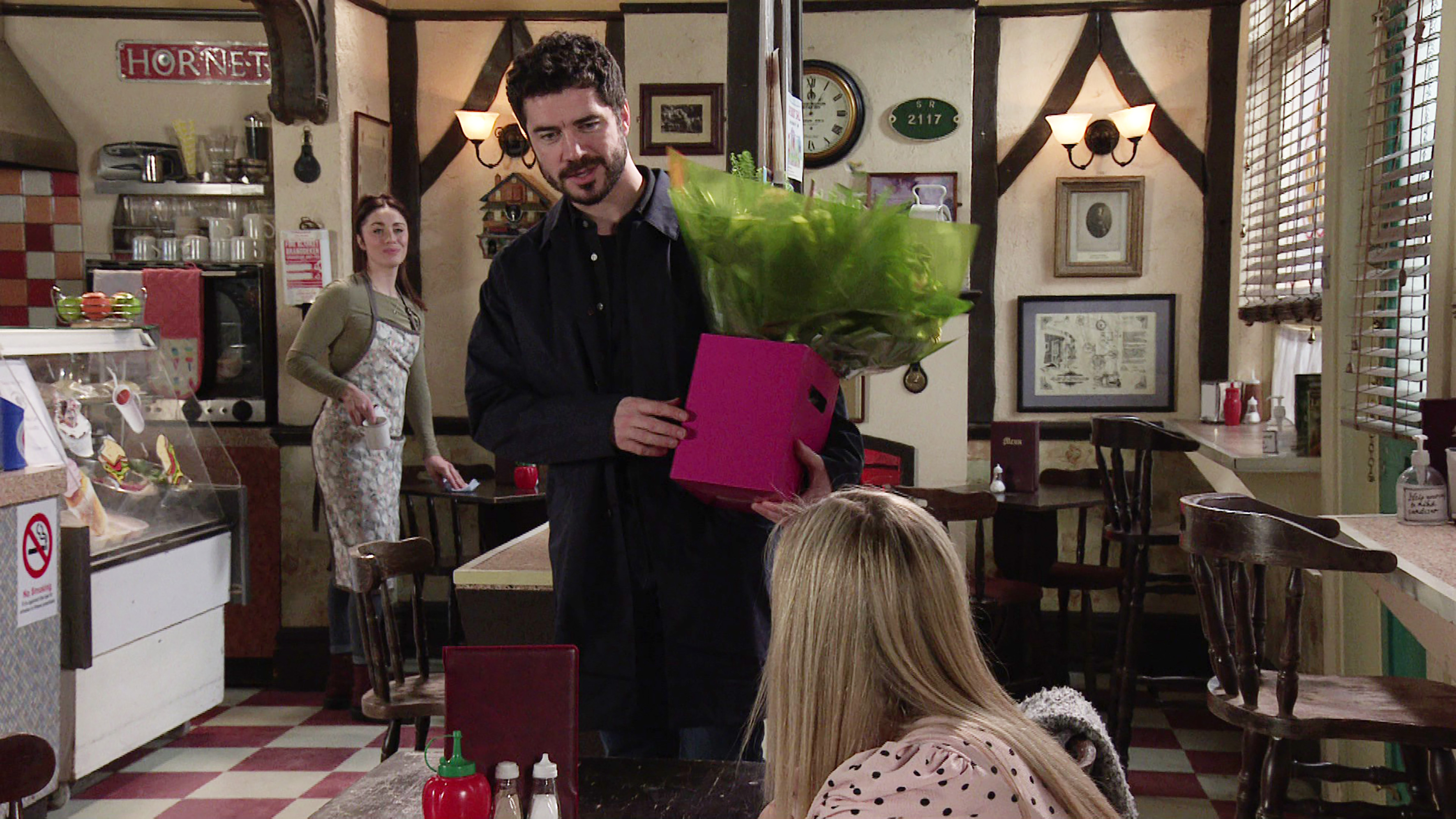 In revenge, Amy gets a job in the kebab shop, to Steve's consternation, who points out to Dev that Jacob used to sling drugs along with the chips and saveloys in For Your Fries Only and Dev sacks her, although Tracy then gives her a job at the florist. Isn't this just a repeat of the Asha-Corey storyline of last year? Except that Jay-kub is a reformed character (for now). I wonder if anyone ever told Amy that her mum sold her to Roy and Hayley and that she was called Patience for a period of time? Because that would be a good weapon to ambush her parents with.