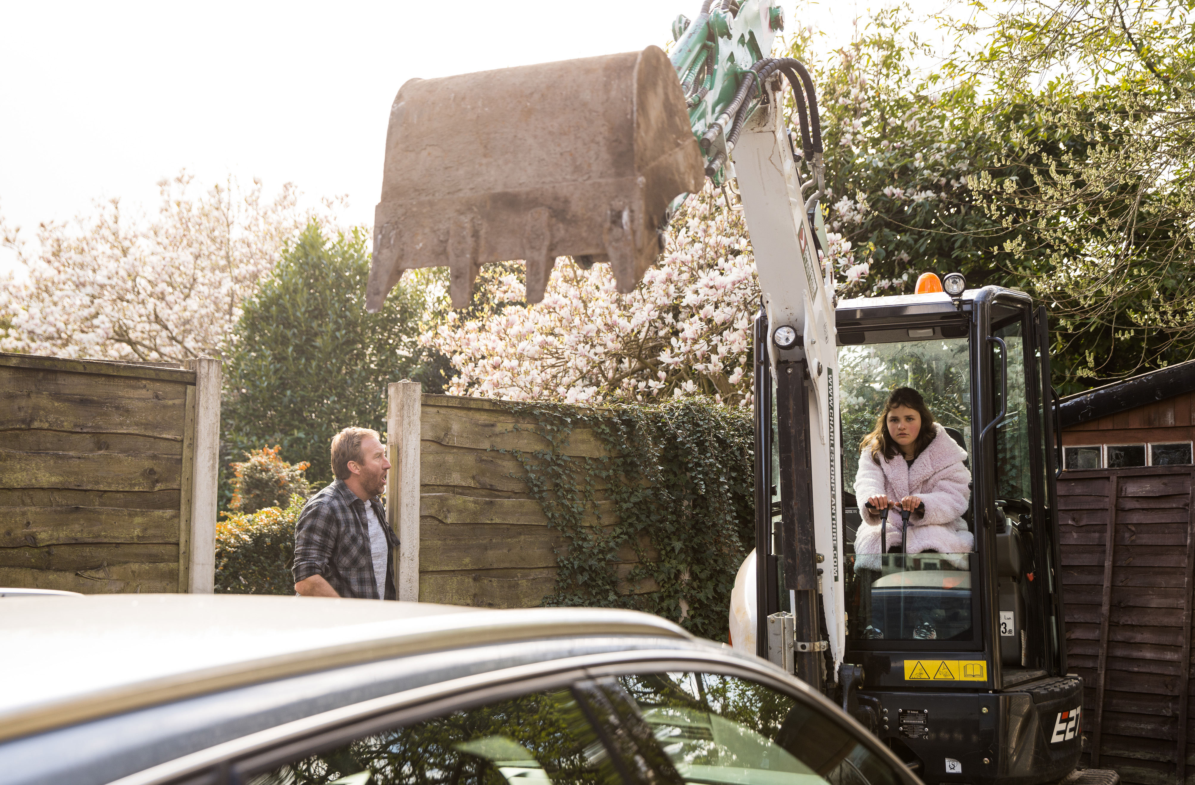 All is well in Paradise-cum-Hardy apart from Hope is off school, which is going to be an important part of tonight's ep. Phil(l) for some reason won't let Hope, who is supposed to be ill, inside the house so when her tablet runs out of juice, he gives her his laptop and she opens a folder called "Stape". Never leave an 11 year old in charge of a laptop, that is a good rule for life. Also don't save your important stuff on your desktop. Hope is out for revenge and despite not having got her JCB licence, lifts the digger scoop and smashes it into Phill's car windscreen. Rude! She is taken back to the cobbles, where she asks Tyrone questions about John Stape and says she saw the info on Phill's laptop. I'm sure an almost 12 year old would have asked about her bio-dad by now surely? Anyway, Phill says it was research for a true-crime book that he wants to write about Stape's reign of haphazard terror. Uh-oh. Fiz leaves Phill and goes back to no. 2 where she and Ty read out the Corriepedia entry for John to Hope and she asks if the writers were on drugs, or sommat. "All he wanted to do was teach," says Fiz. And murder people.