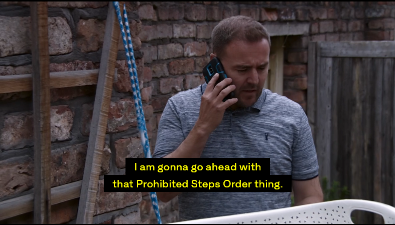 Along at 9 Coronation Street Hope and Ruby do not want Dorin to go home tomorrow and try to get Ty to say he will stay. Fiz is softening and suggests a holiday in Romania next summer. However hiding in the yard Tyrone phones Adam and tells him that he wants to proceed with the Prohibited Steps Order to prevent Dorin leaving the country. [Ty - it might be wise to discuss with Fiz first].